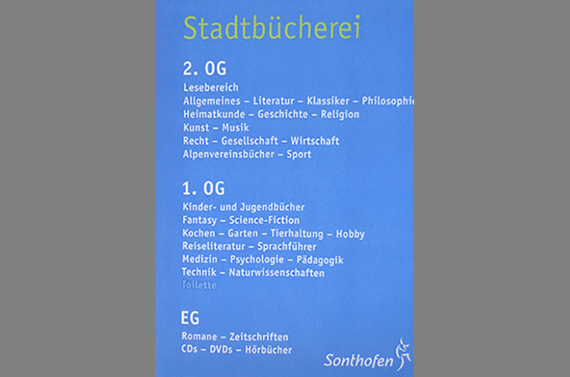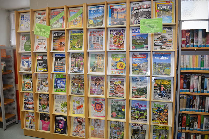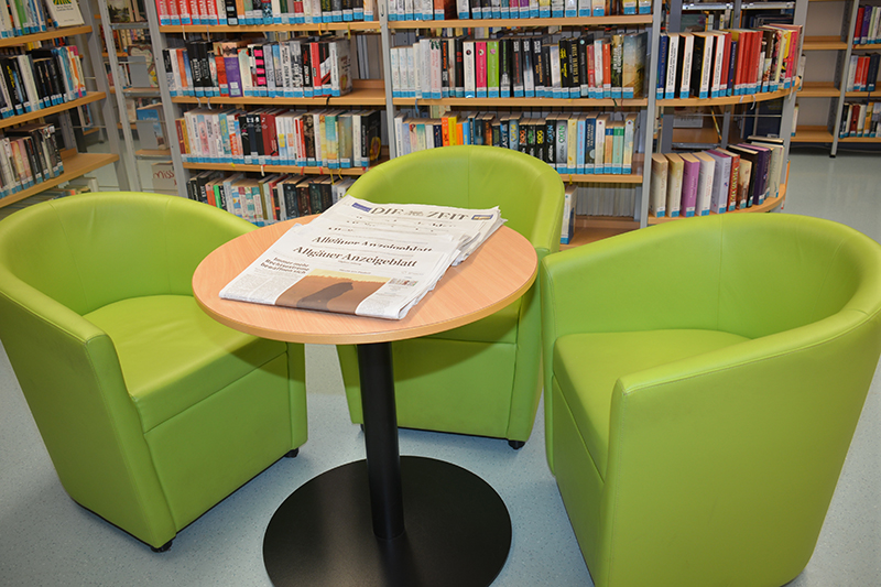 Kommen Sie mit auf einen Rundgang durch unsere Räumlichkeiten: vom Eingangsbereich im Erdgeschoss mit Zeitschriften, CDs und Tonies über die Kinderleseecke und Romane im 1. Stock bis hin zu Fachliteratur sowie der Alpenvereins- und Allgäubibliothek im 2. Stock ist für jeden Bedarf etwas geboten. Liegestühle, Sitzsäcke und eine Kaffeemaschine laden an verschiedenen Stellen zum Verweilen und Schmökern ein. Ein Arbeitsplatz mit Computer ermöglicht eine Literatursuche vor Ort.